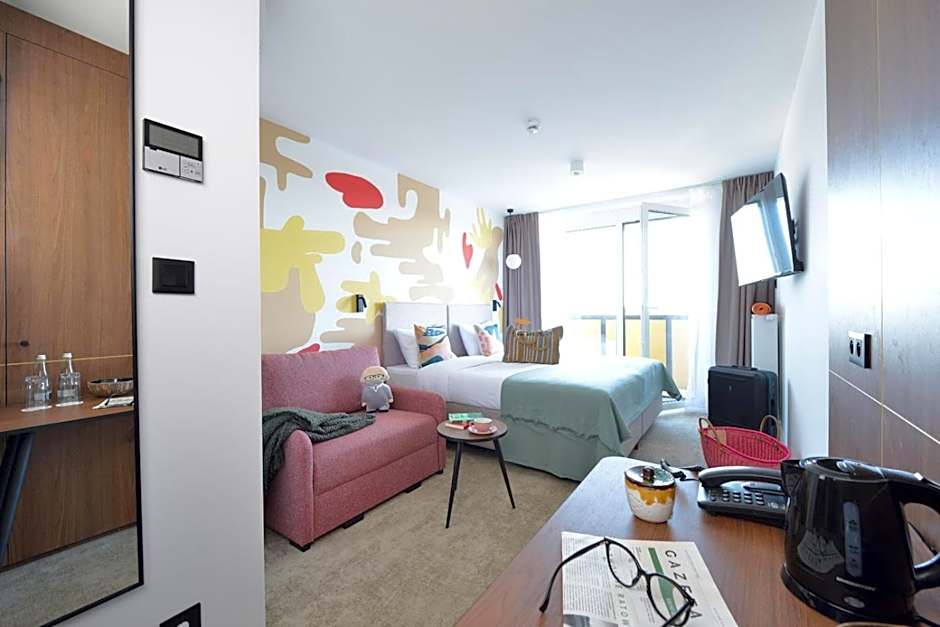 A seating area with a flat-screen TV, a desk, a balcony and a private bathroom are featured in this spacious double room. The unit offers 3 beds.